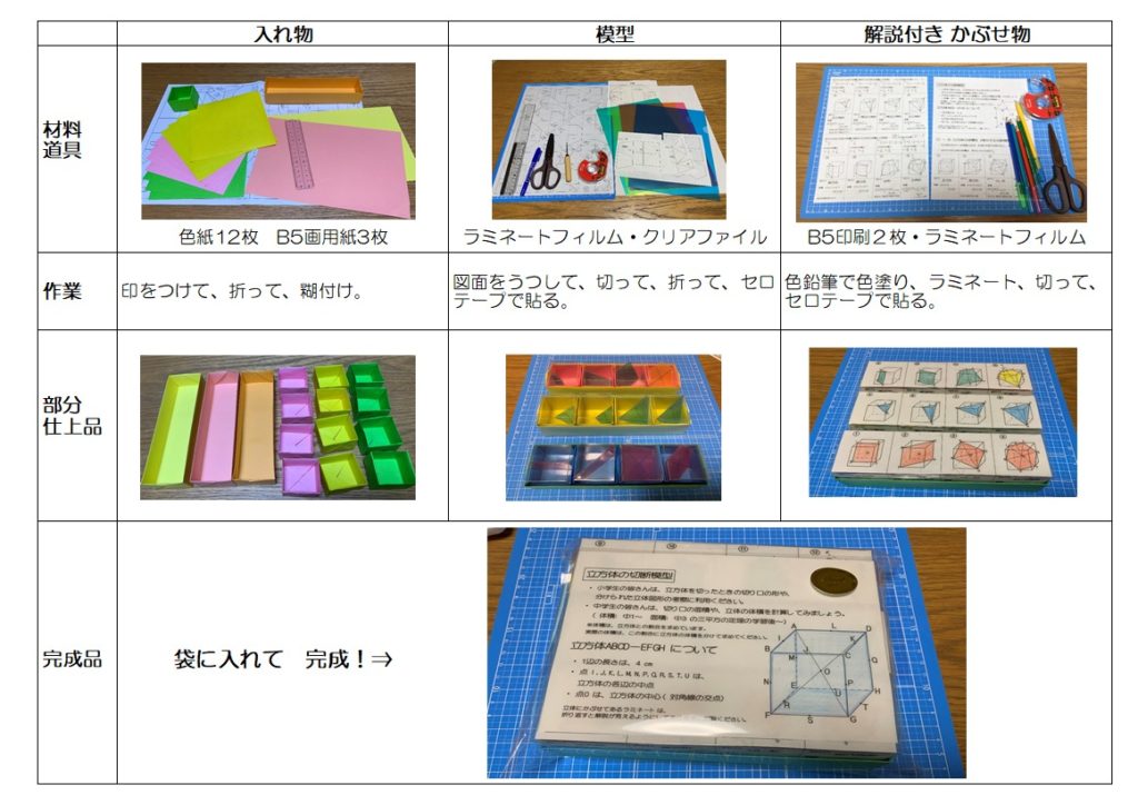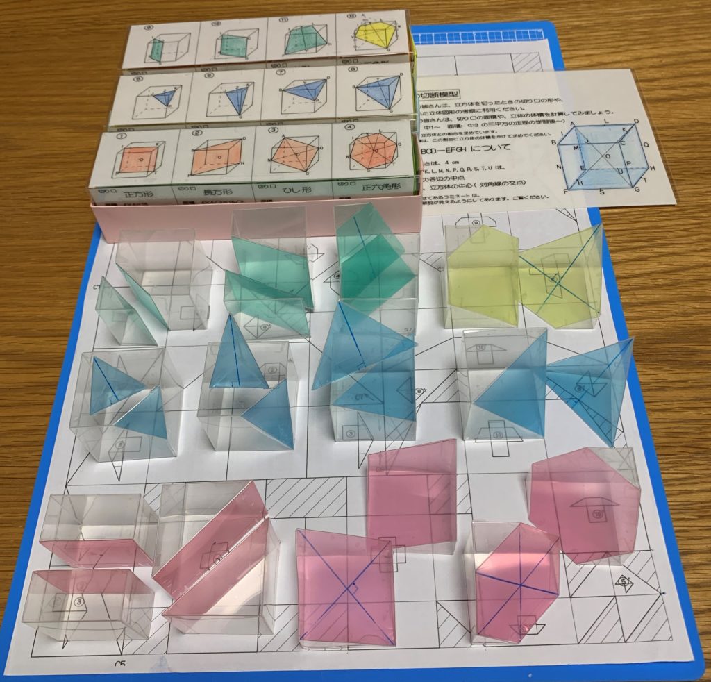 『手作り数学模型 立方体の切断12パターン』 です。