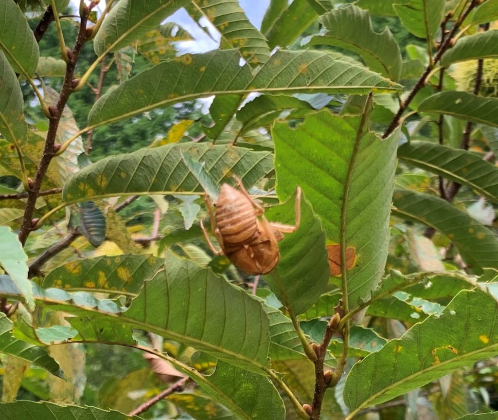 その中の何年か前の台風で折れた栗の木の上の方にセミの殻発見!
